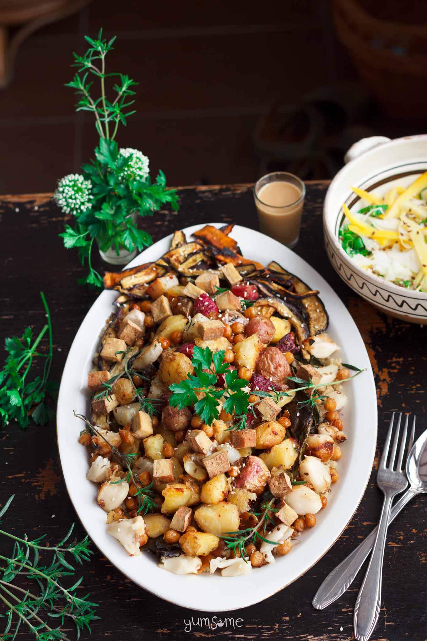 Re. the dressing, I find there's more than enough oil in the tahini to emulsify everything. I'm absolutely not against additional oil, in fact I love a really good olive oil, and sesame rocks my world, but I'm not a fan of putting on weight, so I do try to keep the calories down if I can!