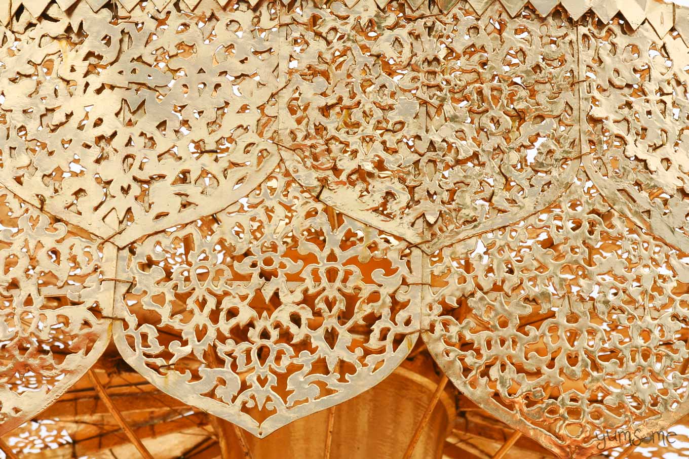 The main chedi (reliquary), made from gleaming copper plate, now stands at 48m (157 ft) high, and is surrounded by four golden chatra - filigree umbrellas, which are said to be auspicious symbols of divinity (much like the Christian halo).